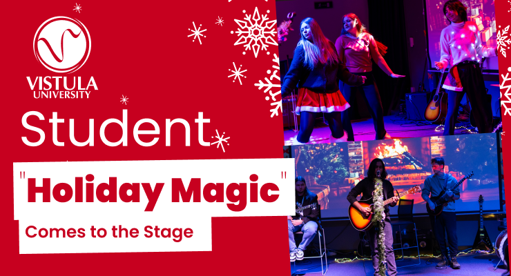 At 5:30 p.m., the Christmas tree lights were officially switched on in the main hall. Kalina Rawicz performed a moving rendition of Mary Did You Know, and Rector Prof. Wawrzyniec Konarski delivered a holiday speech, thanking students for their engagement and for building Vistula’s international community. Afterwards, it was time for shared dancing – the Dance Club got everyone moving with Just Dance, turning the hall into a huge dance floor.