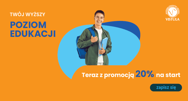 Zapisz się na studia w Uczelni Vistula do 31 października 2025 r., a otrzymasz zniżkę 20 proc. na czesne za pierwszy rok nauki. Promocja dotyczy: