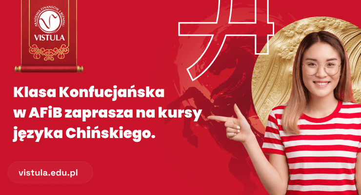 Klasa Konfucjańska w Akademii Finansów i Biznesu Vistula zaprasza na kolejną edycję kursów języka chińskiego. Zajęcia ruszają w marcu: grupy kontynuujące startują 5.03, natomiast grupa początkująca startuje 9.03.