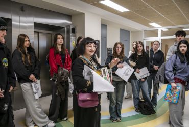 10 kwietnia naszą Uczelnię odwiedzili uczniowie LO Czartoryskiej na Ursynowie wraz z nauczycielką języka francuskiego – Kingą Narkiewicz-Świerkot. Wizyta odbyła się w ramach obchodów Międzynarodowego Dnia Frankofonii i miała formę godzinnego spotkania połączonego ze spacerem po przestrzeni akademickiej oraz performatywnymi mini-warsztatami poświęconymi komiksowi francuskojęzycznemu.