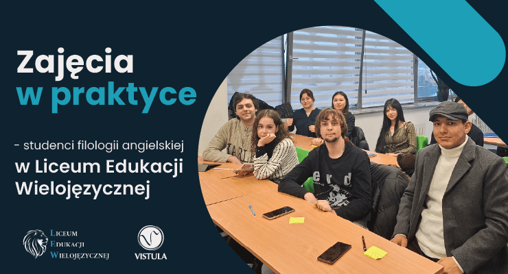 Studenci filologii angielskiej Akademii Finansów i Biznesu Vistula, realizujący specjalizację EFL Teaching and Tutoring, wzięli udział w zajęciach w Liceum Edukacji Wielojęzycznej (LEW). Wizyta została zorganizowana dzięki uprzejmości Pani Dyrektor Agaty Żurowskiej, członkini Rady Biznesu AFiB Vistula.